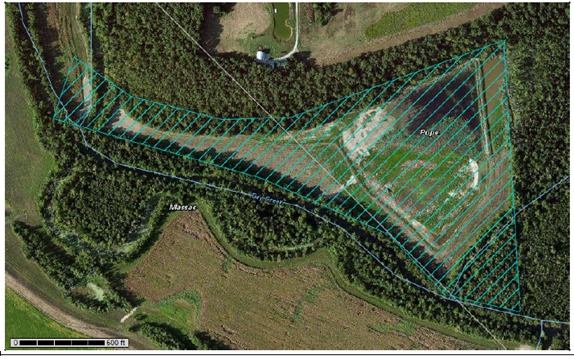 West: Bay Creek (boat crossing only) and neck of a crop field